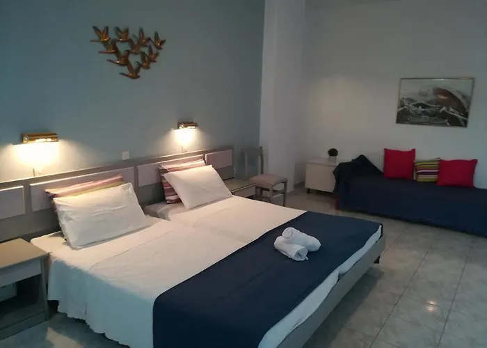 Obiekt noclegowy wyposażony jest w pełnowymiarową kuchnię z lodówką, czajnikiem i piekarnikiem. Dania kuchni greckiej serwowane są w restauracji Mimis, która leży w odległości 5 min spacerem.